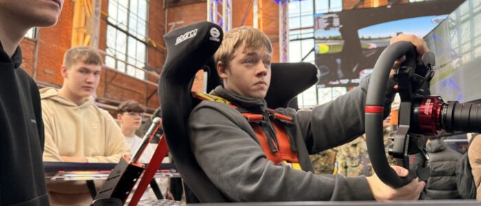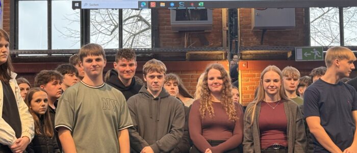 Am Mittwoch stieg das große Finale des SIM Racing Events der Bundeswehr. Davor wartete allerdings ein langer Weg. Ende Oktober traten alle Schüler*innen der 10. Klassen gegeneinander an und durften auf sogenannten Full-Motion-Rennsimulatoren ein spannendes Rennen um die schnellste Runde fahren. Die 5 Schüler*innen mit der schnellsten Runde bildeten dann das Team „Sim-Racing KRO“. Nach dem Abschluss des Qualifyings stand die weitere Ausbildung unseres Sim Racing Teams im Fokus. Gemäß dem Motto „Fördern und Fordern“ wurde das Team in die nach Leer eingeladen, wo sie z.B. mehr zu „Fahrzeugeinstellungen und Fahren auf der Rennstrecke“ erfuhren. Auch danach ging das Training noch weiter und die Bundeswehr stellte dem Team für einen Tag zwei Simulatoren zur Verfügung, damit die Finalisten den Fahrerwechsel üben und Fahrzeugeinstellungen austesten konnten. Und dann war es da – das große Finale in der Kesselschmiede Im Forum Alte Werft in Papenburg. Dort trat das Team KRO gegen 11 andere Teams aus dem ganzen Nordwesten Niedersachsens an. Unter der Anfeuerung ihrer Klassenkameraden lieferte sich das Team KRO ein spannendes Rennen – Ziel war natürlich die Titelverteidigung. Nach dem Qualifying und dem Rennen im ersten Halbfinale stand das Finale an. Sogar der Vorjahressieger Julio kam zum Daumendrücken vorbei. Im Finale lag das Team KRO bis zur letzen Runde vorne, bevor es dann von der dem Team Wittmund überholt wurde. Verbunden mit dem Erreichen eines tollen 2. Platzes erhielt jeder des Teams KRO einen Gutschein über 300 Euro für den Führerschein.